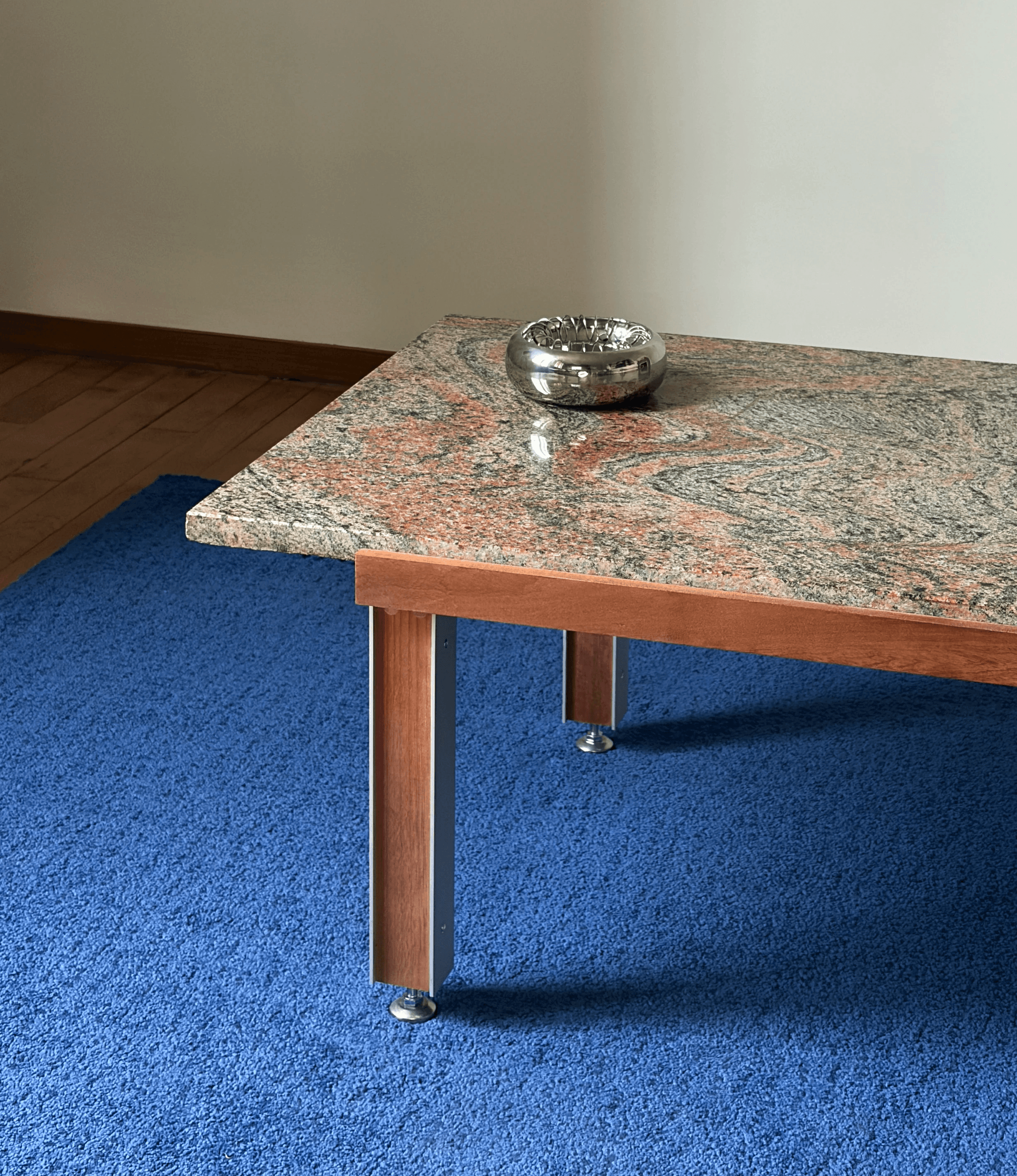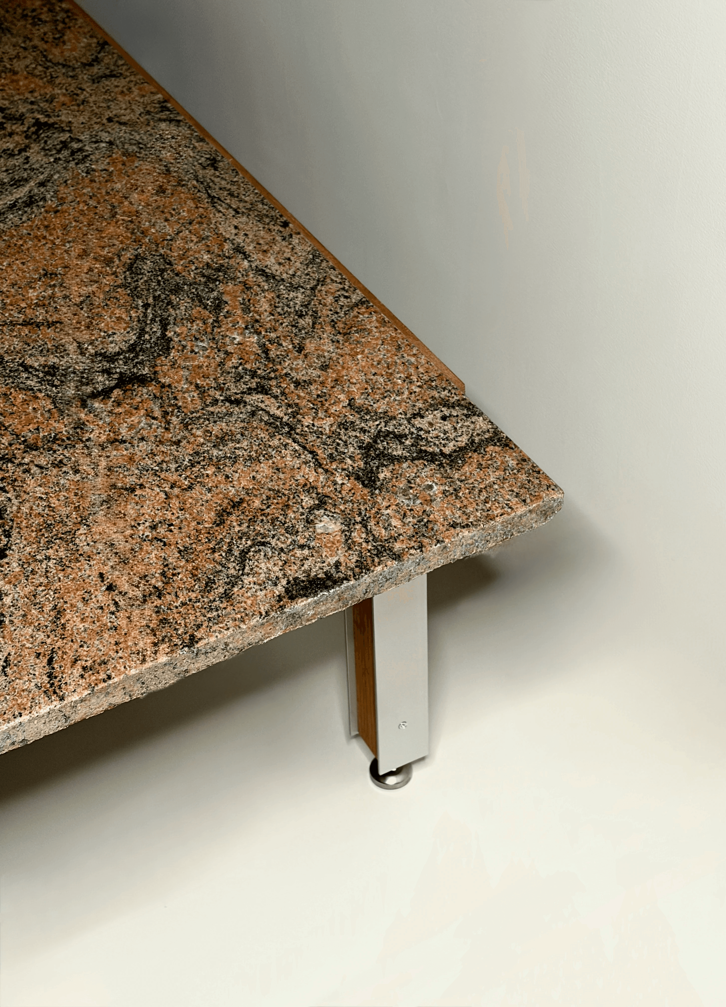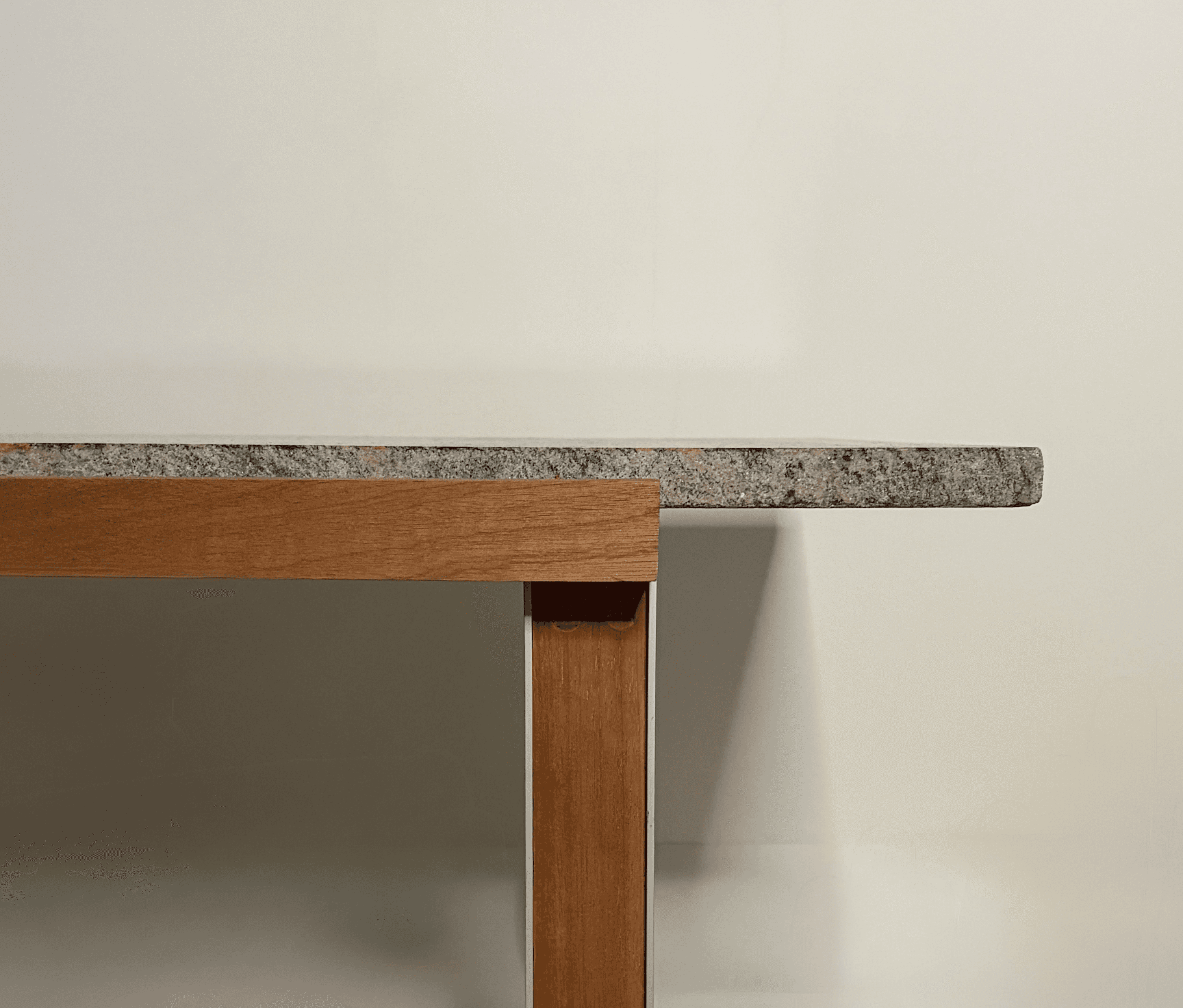 This coffee table is entirely made from reclaimed materials, giving a second life to elements that already carried their own history. The granite top comes from a reuse center, the wood is sourced from the remnants of a shelving unit built in an architecture studio, and the metal legs originate from a former daybed. The table draws inspiration from the simplicity and functional elegance of creations by Danish designer Poul Kjærholm, renowned for his minimalist pieces in metal and stone. Here, the contrast between the raw granite and the metal legs echoes that aesthetic, while introducing a unique dimension through the unpredictable character of reclaimed materials. Each table is therefore a unique piece: its dimensions are determined by the size of the available granite slab, and no two can ever be exactly reproduced. This project fully embodies the idea of resource-conscious production that honors the history of materials, while remaining both functional and poetic.