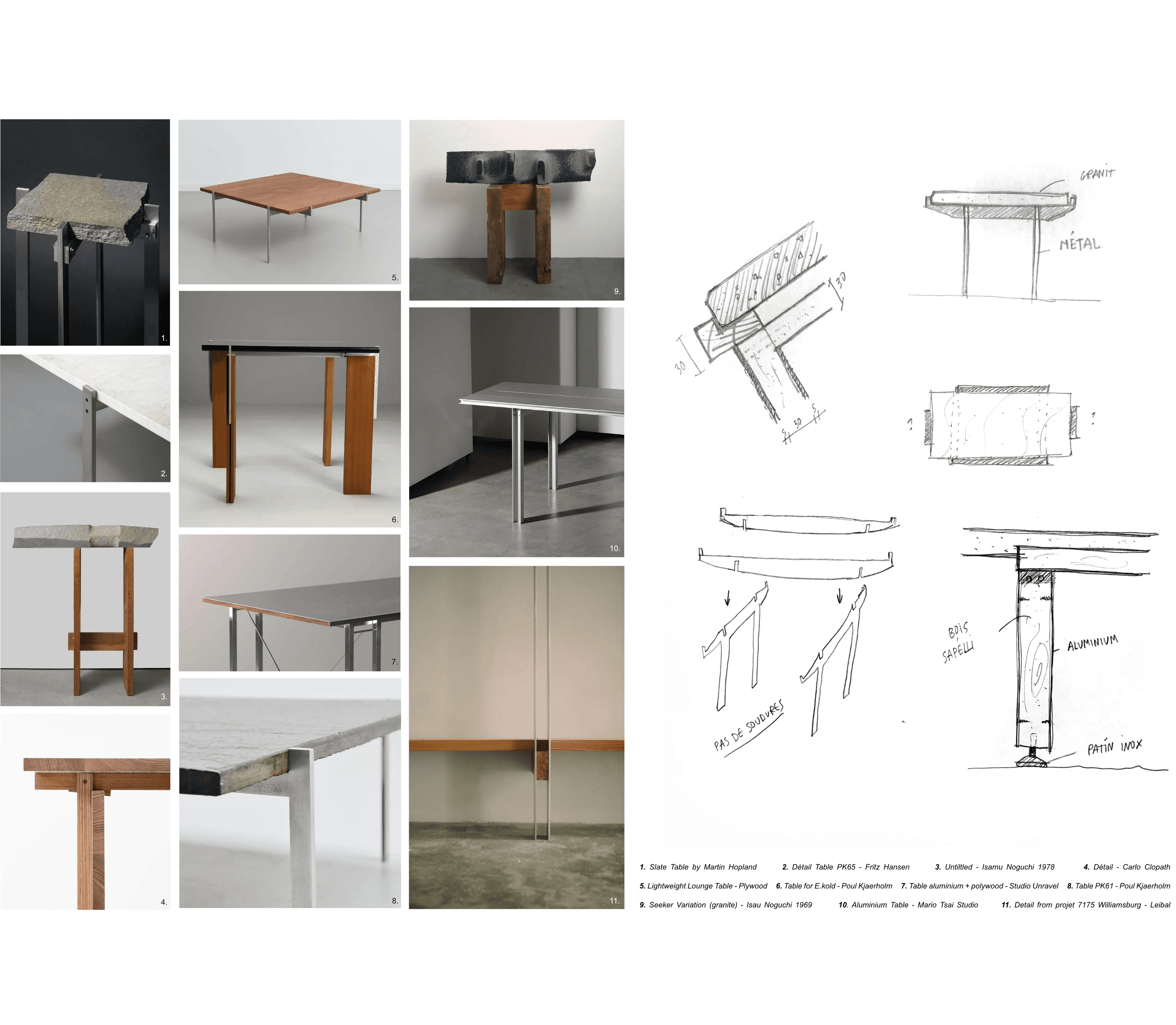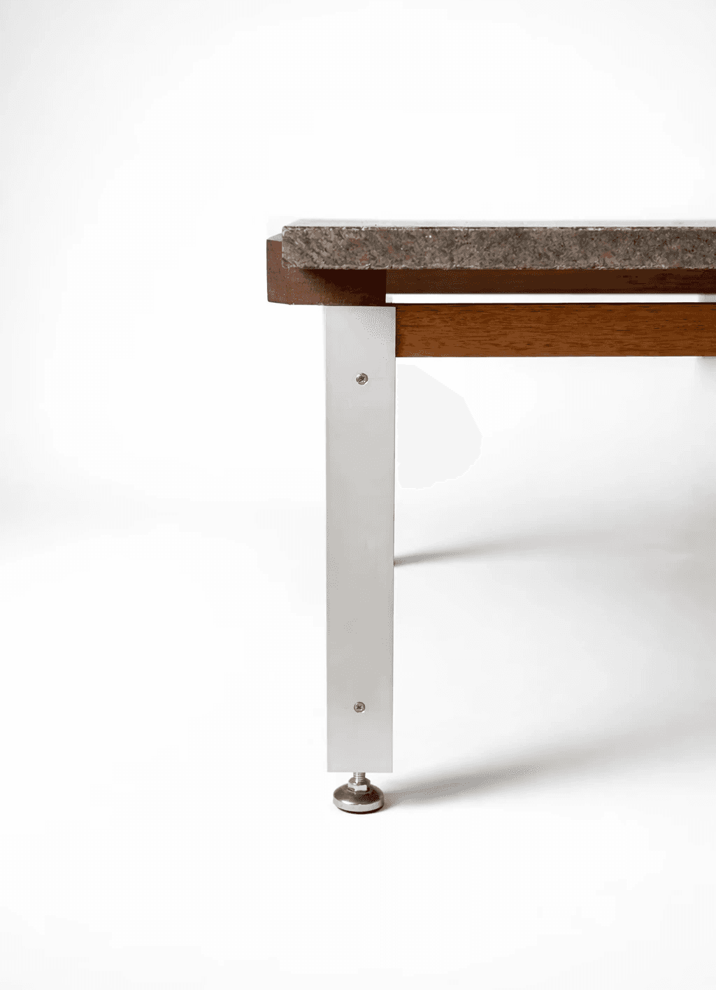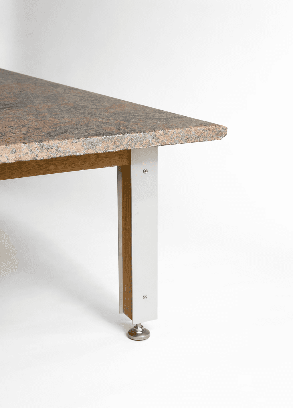 This coffee table is entirely made from reclaimed materials, giving a second life to elements that already carried their own history. The granite top comes from a reuse center, the wood is sourced from the remnants of a shelving unit built in an architecture studio, and the metal legs originate from a former daybed. The table draws inspiration from the simplicity and functional elegance of creations by Danish designer Poul Kjærholm, renowned for his minimalist pieces in metal and stone. Here, the contrast between the raw granite and the metal legs echoes that aesthetic, while introducing a unique dimension through the unpredictable character of reclaimed materials. Each table is therefore a unique piece: its dimensions are determined by the size of the available granite slab, and no two can ever be exactly reproduced. This project fully embodies the idea of resource-conscious production that honors the history of materials, while remaining both functional and poetic.
